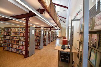 Heute verfügt die moderne Bibliothek über ein vielseitiges Medienangebot sowie Internet- und PC-Arbeitsplätze und einen Gruppenarbeitsplatz für bis zu 8 Personen im öffentlichen Bereich. Kostenfreie Parkplätze stehen vor Ort zur Verfügung.